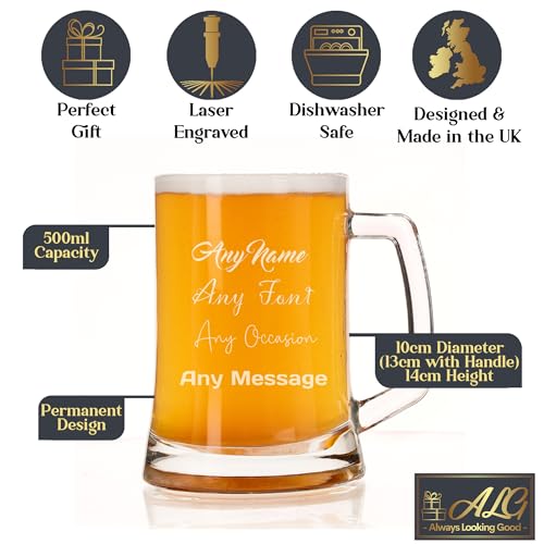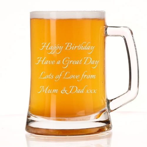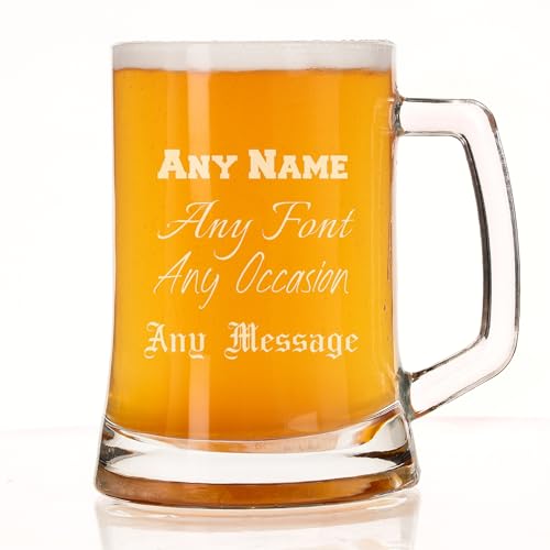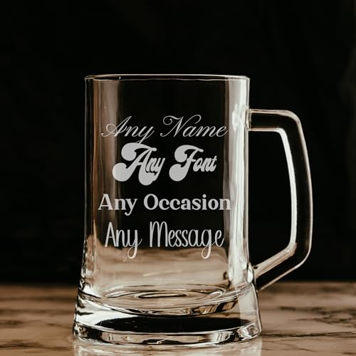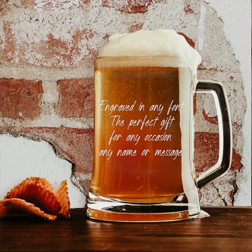 Personalised Beer Glass – Beer Mug Engraved with Any Message for Any Occasion in your Choice of 20 Fonts, Personalised Beer Glasses For Men, Tankard Custom Engraved Beer Stein Gift (Any Text)