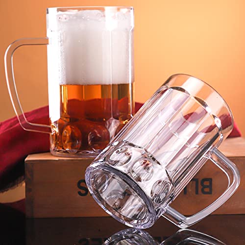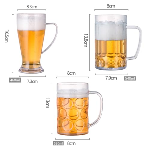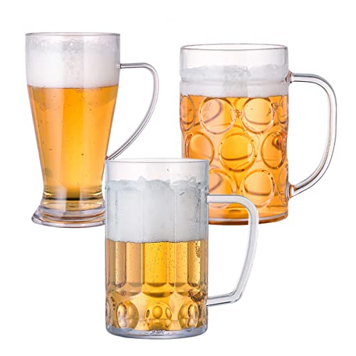Unbreakable Acrylic Classic Beer Mug, Made of Shatterproof Plastic and Ideal for Indoor and Outdoor Use, Reusable, Crystal Clear (Set of 3)