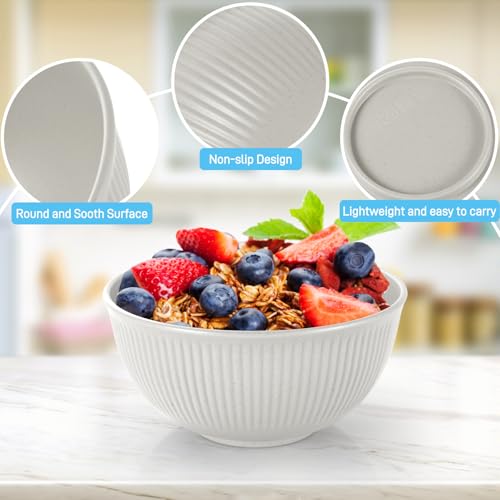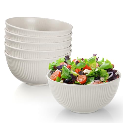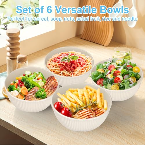 6Pcs Unbreakable Cereal Bowls, 655ml Lightweight Plastic Bowl Set, Reusable for Party, Picnics, Camping, Breakfast, Salad, Pasta, Soup, Noodles, Snack(Beige)