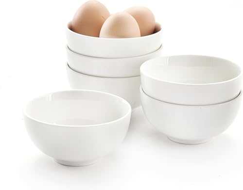 AntoKueh White Ceramic Cereal Bowls 11.4cm, 400ml Small Bowls Set of 6 for Kitchen Cooking, Breakfast, Dessert, Rice, Jello, Pudding, Yogurt, Sturdy for Dishwasher & Microwave