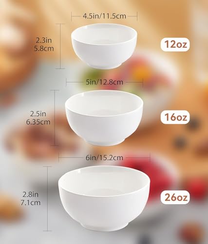 🌟Perfect Size for Small Servings: AntoKueh 4.5 inches(11.4cm) white ceramic Bowls have a MAX capacity of 12 fl oz(400ml). 12 oz is to the very top. Each small bowl can hold 9-10 fl oz, which is perfect size for kitchen daily use, they are the ideal size for children or health-conscious adults looking to manage their food portions.