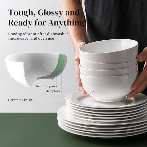 Versatile Size: Deep and Classic 22 OZ soft white bowls set are perfect for cereal, soup, nuts, salad, fruit, rice, and noodle without spillage. Ideal for family dinners, food storage, breakfast oatmeal, restaurant service, parties, and holiday gifts.