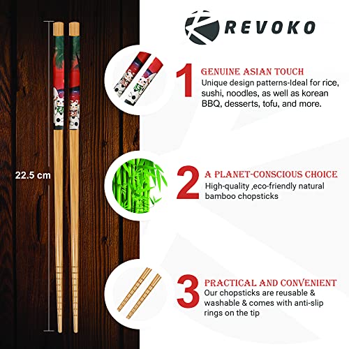 Anti-Slip Bamboo Chopsticks: Enjoy an authentic Asian cuisine experience and indulge in its delicious dishes using nothing more than the REVOKO Chinese chopsticks! Our chopsticks have an anti-slip design that makes them easy to hold, for a comfortable and enjoyable eating experience.