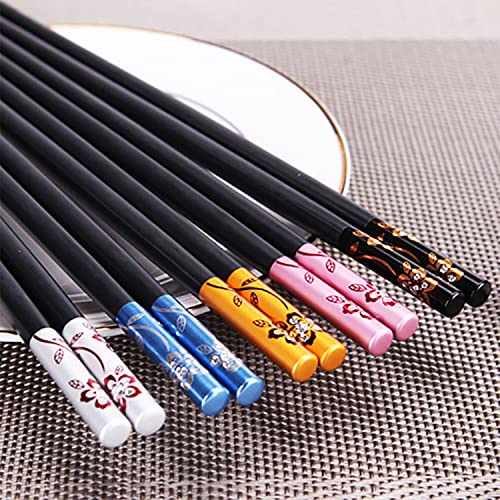 nuoshen Fiberglass Chopsticks, 5 Pairs Non Slip Fancy Chop Sticks Dishwasher Safe Reusable Chopstick Set for Sushi Noodles Rice, Multicolour