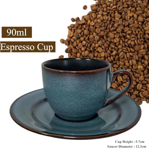 Espresso Coffee Cups and Saucers Sets of 4,90cc Porcelain Small Tea Coffee Cups Saucers Starry Glazed Coffee Mugs with Handle, 3oz Chinese Small Mini Tea Cup Set