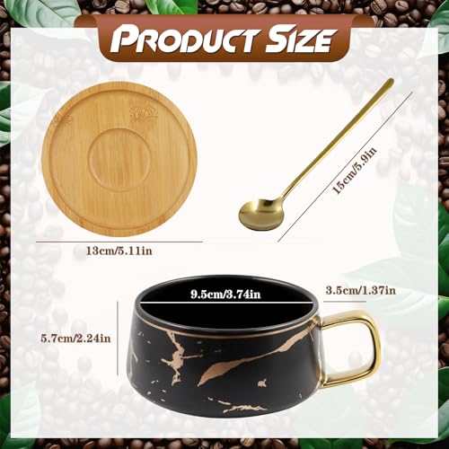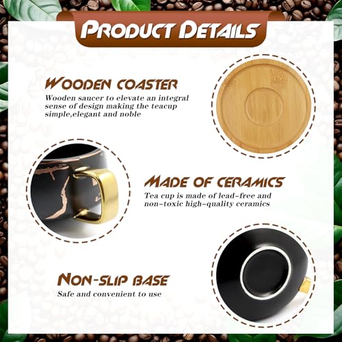 Marble Ceramic Coffee Mug Sets Tea Cup with Spoon Wood Saucers, Gifts for Valentines Mothers Day Graduation Birthday Christmas, Women Men Mum Her Wife Friend Teacher Presents Idea