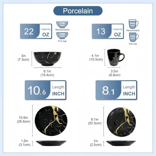 Be the first to review “Alivio 16-Piece Premium Porcelain Dinnerware Set – Black & Gold Marble Design, Scratch-Resistant Luxury Tableware Collection”