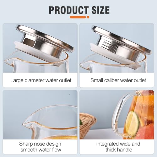 Large Capacity & Wide Mouth for Easy Use: With a generous 2.5L 88 oz large capacity, this glass water pitcher is ideal for entertaining crowds or daily use. The wide mouth design allows for effortless filling and mixing of beverages, while also making it remarkably easy to clean by hand or in the dishwasher.
