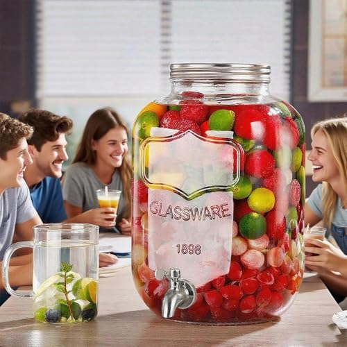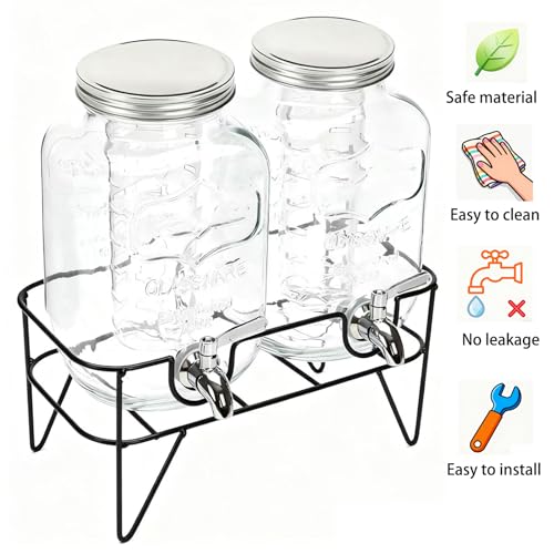 2 Pack 4L Glass Drink Dispenser with Tap, Beverage Dispenser, Glass Water Dispenser with Stand Stainless Steel Spigot, Ideal for Parties, BBQ, Picnic, Wedding, Coffee or Lemonade Serving