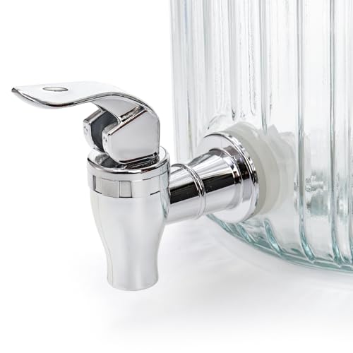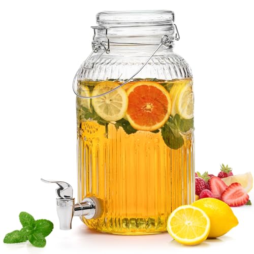 Kingrol 4L Glass Drink Dispenser with Tap, 1 Gallon Mason Jar Drink Dispenser with Lid and Spigot – Wide Mouth, Leak Proof Juice Pitcher- Vintage Beverage Dispenser for Party, Wedding, Picnic