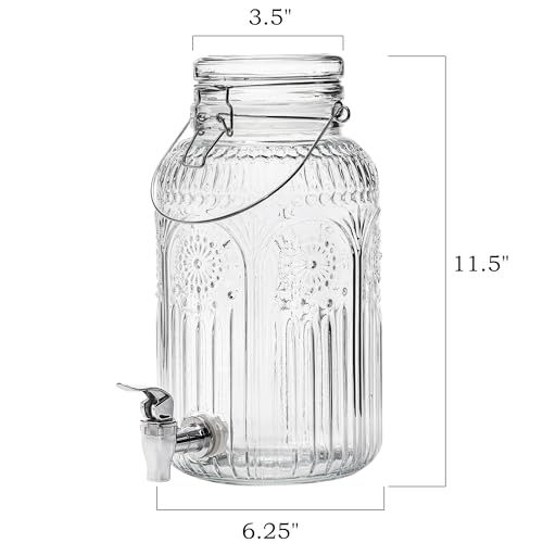 Gorgeous Beverage Dispenser – Measures 6.25″(15.5 CM)Diam x 11.5″(29 CM)H, holds up to 1 gallon(4 L). Fill with homemade iced tea, lemonade, sangria, rum punch, water, and much more.