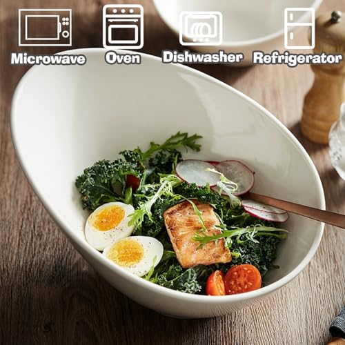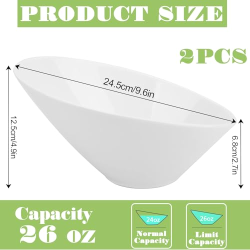 2 Pack Angled Serving Bowls 26oz /770ml Ceramic Salad Bowls Set Porcelain Serving Bowls White Slanted Bowl for Salad, Soup, Pasta, Fruit, Cereal