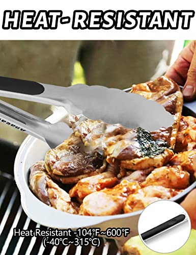 HEAT RESISTANT UP TO 480F – Made of high quality thicken stainless steel, making these metal tongs durable and resistant to corrosion and rust. Easy to clean and Dishwasher Safe. Just pop these handy stainless steel tongs in your washer for easy clean-up.
