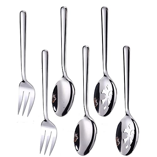 Serving Spoons*2 Slot Spoons* 2 Forks *2 Buffet Colander Stainless Steel Banquet Set, Set of 6. Lenght 9″ (6-spoon forks set)