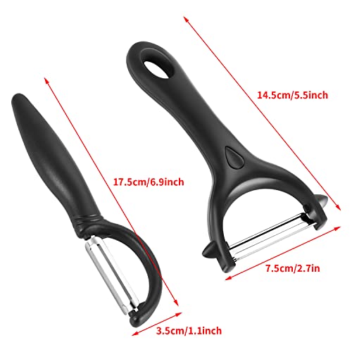 【Package】You will get 2 pieces assorted prep peelers in black, the size is 7x3in and 1.1*6.9in,