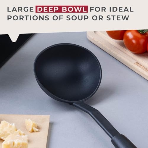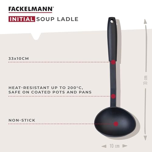 1 x Fackelmann INITIAL Soup Ladle, Non-Stick Plastic, Sauce Ladle, Stirring & Serving, Heat-Resistant Up To 200 Degrees, Home & Professional, Large Scooping Stew & Gravy Spoon, 33x10x6cm, Black