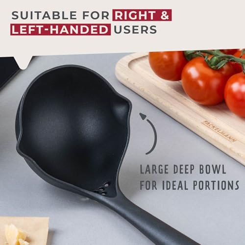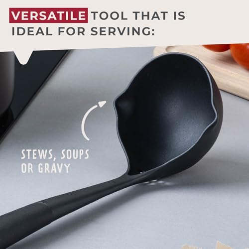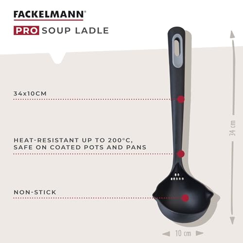 Fackelmann PRO Soup Ladle, Non-Stick Sauce Ladle, Stirring & Serving, Heat-Resistant 200 Degrees, Home & Professional, Large Scooping Stew & Gravy Spoon, Left & Right Handed, 34 cm, Black & Grey