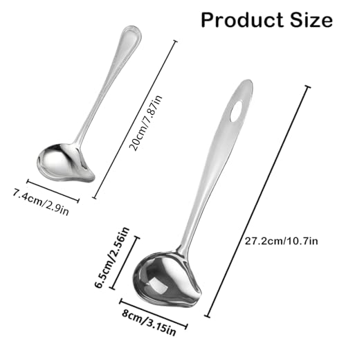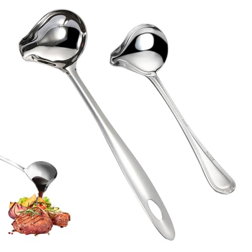 IUSOT 2-Piece Ladle Set, Stainless Steel Ladel, Soup and Oil Ladle, Soup and Gravy Spoon with Pour Spout for Sauce Serving (Duckbill Design)