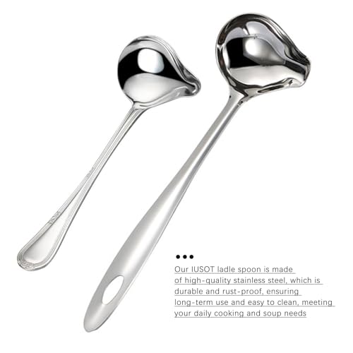 1. The IUSOT 2 Piece Ladle Spoon set brings more convenience and deliciousness to your kitchen. This high-quality serving spoons is made of solid stainless steel, durable and rust-proof, ensuring long-term use and easy to clean.