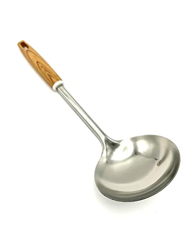 TIJAR stainless steel long handle ladle spoon with an attractive wood effect but nylon handle