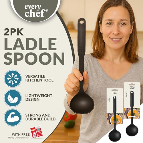 SOL 2pk Ladle Spoon – Durable Plastic Serving Utensils for Soups, Stews and Sauces – Heat Resistant Kitchen Tools for Cooking and Draining – Lightweight, Easy Clean Design for Everyday Use