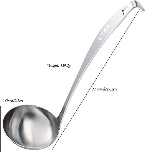 TENTA KITCHEN 3oz/85ml Stainless Steel Small Soup Ladle Spoon,11.5″x 3.6″ – One-piece Professional Ladle With Hook And Hole For Convenient Hanging