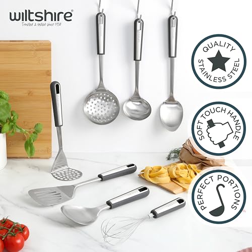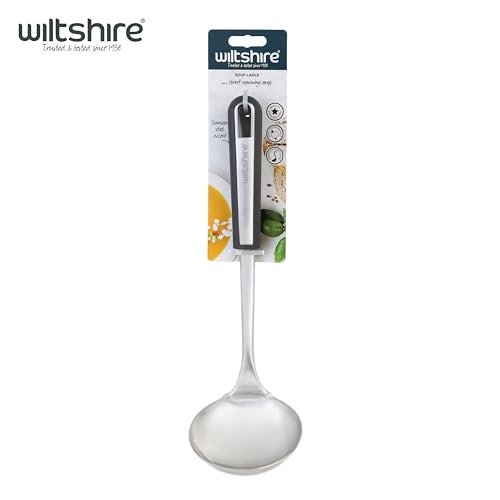 1 x Wiltshire Aspire Soup Ladle, Stainless Steel, Stirring & Serving Soup Spoon, Cooking Spoon, Anti-Slip Soft Touch Handle, Grey & Silver, 31×8.7x7cm