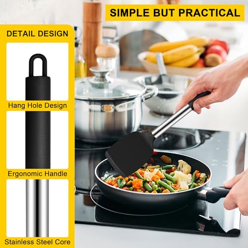 【HEAT PROOF & NON-STICK】 Ergonomically designed handle, fits well with the natural grip of your hand, Heat-proof handle can insulate from heat and protect your hand when you cooking, Non-stick silicone effectively reduces the adhesion of food during cooking, ideal for daily frying, mixing, serving, draining, turning, stirring
