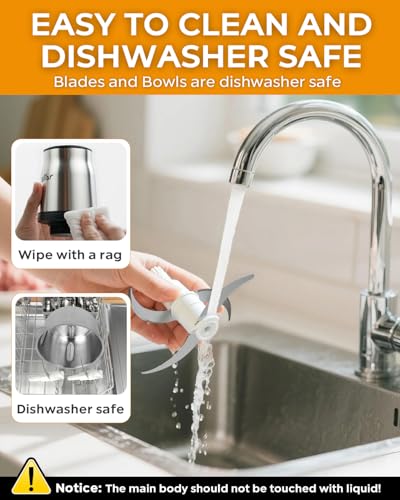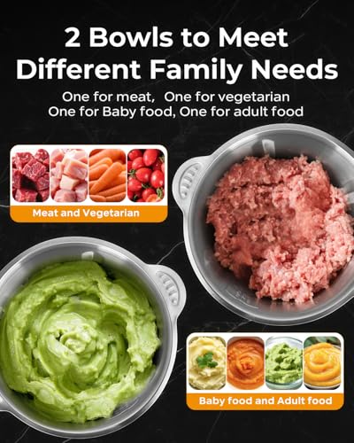 【Easy Cleaning & Storage】Quick to assemble and disassemble. Stackable bowls save space. The bowls and blades parts are dishwasher-safe. Made with BPA-free materials for safe family and baby food use.(Note:Do not put the lids and motor into the dishwasher.)