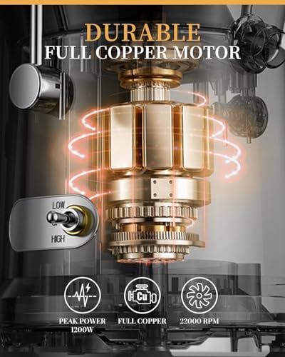 [1200W High Quality Motor]: The 1200W juicer has a high speed of 22000rpm, which can extract nutritious juice from fruits and vegetables in seconds. You can effortlessly enjoy fresh and delicious juice, saving you valuable time. The all-copper material can prevent the motor from heating up and improve the safety and life of the juicer.