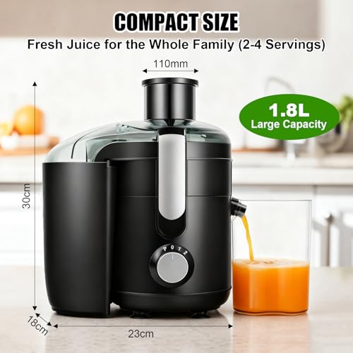 Juicer Machine, Electric Centrifugal Juicer with Titanium Enhanced Cut Disc, Dual Speeds with 2.5″ Feed Chute, for Fruits and Veggies, Anti-Drip, Includes Cleaning Brush, BPA-Free Black