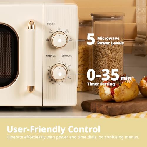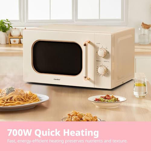 COMFEE’ 20L 700W Cream Compact Microwave Oven – 5 Power Levels, Defrost Function, Manual Control & Safety Lock, Ideal for Small Home & Kitchen, CMO-M202NC(CM)