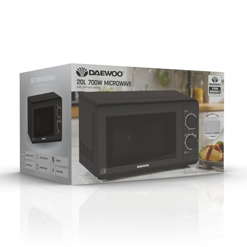 Daewoo Manual Microwave, 20 Litres, 700W, 6 Power Settings Including Defrost, 30 Minute Timer, Cooking End Signal, Viewing Door With Push Open Button, Black