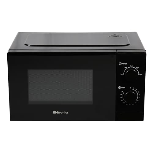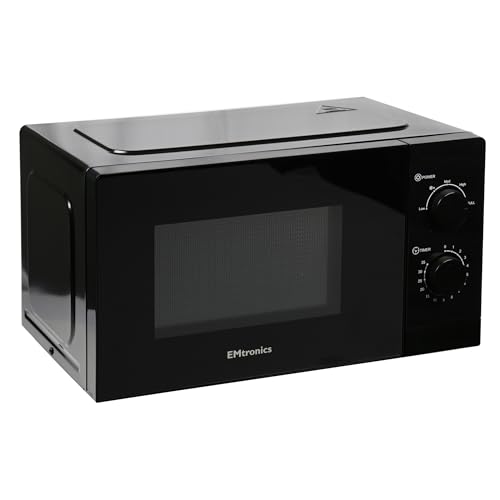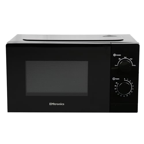 EMtronics 20 Litre 700W Manual Control Microwave with 5 Power Levels, Defrost Function, 35 Minute Timer and Cavity Light – Black