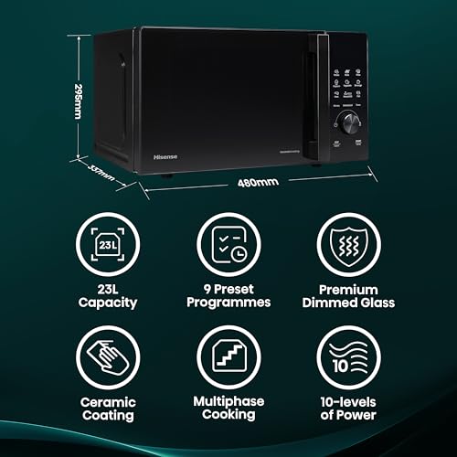 Hisense H23MOBSD1HUK 23 Litre 800W electronic Microwave with Auto Defrost, Digital Display, Smart Cook, Multi level cooking and Easy Clean- Black