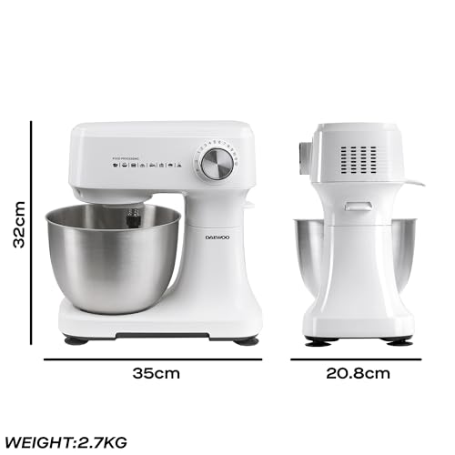 Daewoo Essentials Stand Mixer 3.5 Litres With Stainless Steel Bowl, 3 Attachments Flat Beater, Balloon Whisk, Dough Hook, Splash Guard, 12 Speeds Plus Pulse, Suction Feet For Stability