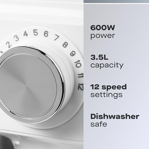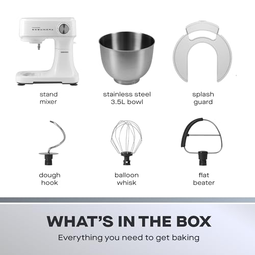 MULTIFUNCTIONAL – Designed to meet all your baking needs, our stand mixer features a 3.5L capacity bowl and includes a flat beater perfect for cake batter, a balloon whisk that’s ideal for whipping cream, and a dough hook that’s great for kneading bread