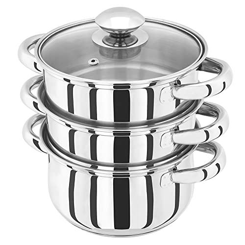 Multifunction Use: Remove tiers to use the base as a hob-to-oven casserole dish, making this 3 tier stainless steel steamer a versatile kitchen essential.