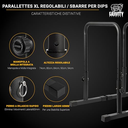 Gravity Fitness Dip Bars XL – Heavy-duty Parallettes for Calisthenics, Home Gym & Commercial Use – Adjustable 38mm Handles for Dips, Levers, Strength Training, and Gymnastics Training