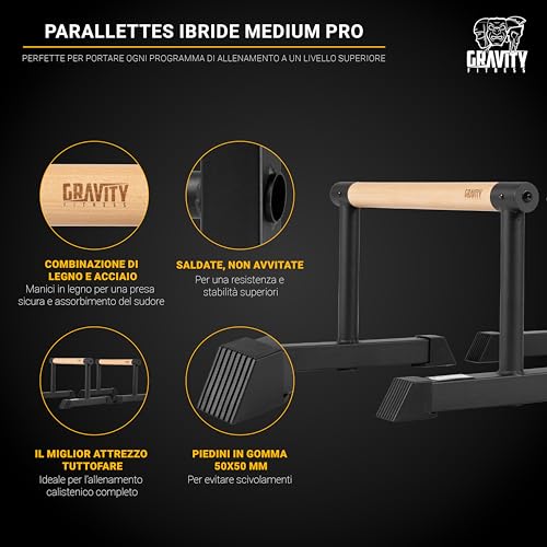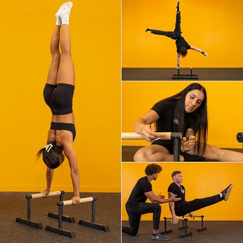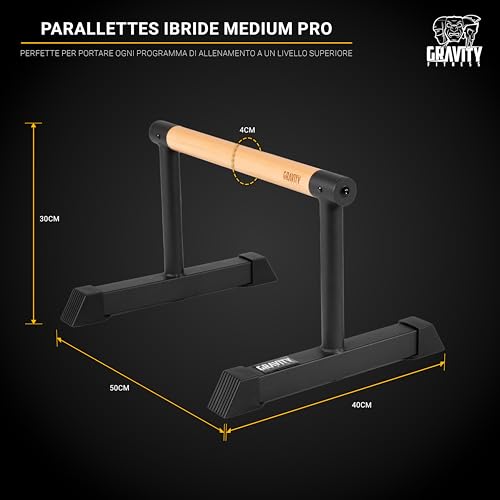 Gravity Fitness Parallettes Bars with Hybrid Wooden Handles, Stable for Calisthenics, Gymnastics, Strength Training, Portable & Lightweight for Home or Commercial Gym