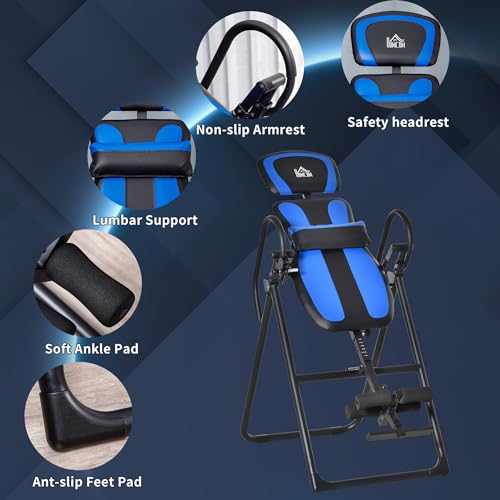 HOMCOM Foldable Gravity Inversion Table, Back Therapy Fitness Bench w/Soft Ankle Cushions, for Home, Office, Gym – Black