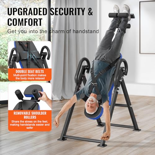 VEVOR Inversion Table, 300 lbs Capacity Heavy Duty Inversion Table, Decompression Back Stretcher Machine, Strength Training Equipment with Headrest, Ankle Lock, Adjustable Protective Belt, Blue/Black