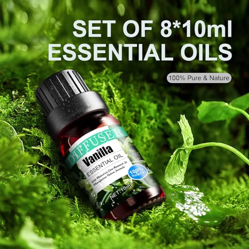 Pure Essential Oils: Refined from natural plant extracts such as tea tree, peppermint, jasmine, vanilla, lemon, rose, orange and lavender. The set includes eight bottles of essential oils, each bottle holds 10 mL. Pure and safe, you can use it with confidence.