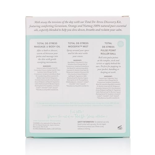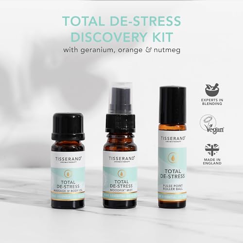 Tisserand Aromatherapy – Total De-Stress Discovery Kit – Roller Ball, Massage & Body Oil & MoodFix Mist – 100% Natural Pure Essential Oils – 2x9ml, 1x10ml