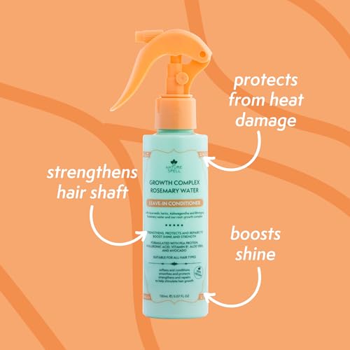Nature Spell Rosemary Water Leave in Conditioner – Promotes Hair Growth, Heat Protection Spray for Hair, Detangling, Smoothes & Adds Shine, with Ayurvedic Herbs, For All Hair Types, 150ml