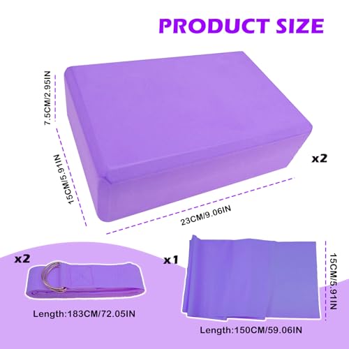 Convenient Size:Yoga bricks measure 23 x 15 x 7.5 cm (9 x 5.9 x 2.9 in), yoga stretch straps measure 183 x 3.8 cm (72 x 1.49 in), and Yoga band measure 150 x 15 cm (59 x 5.9 in). They help improve deep balance, enhance strength and flexibility